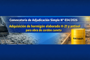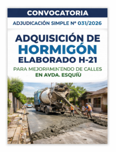 Convocatoria de Adjudicación Simple N° 034/2026 – Adquisición de hormigón elaborado H-21 y antisol para obra de cordón cuneta