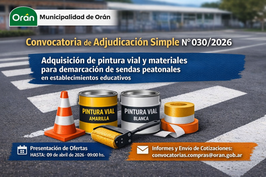Presentación de cotizaciones: En el Departamento de Compras de la Municipalidad de Orán o vía e-mail a convocatorias.compras@oran.gob.ar (descargar archivo Excel para facilitar la cotización).