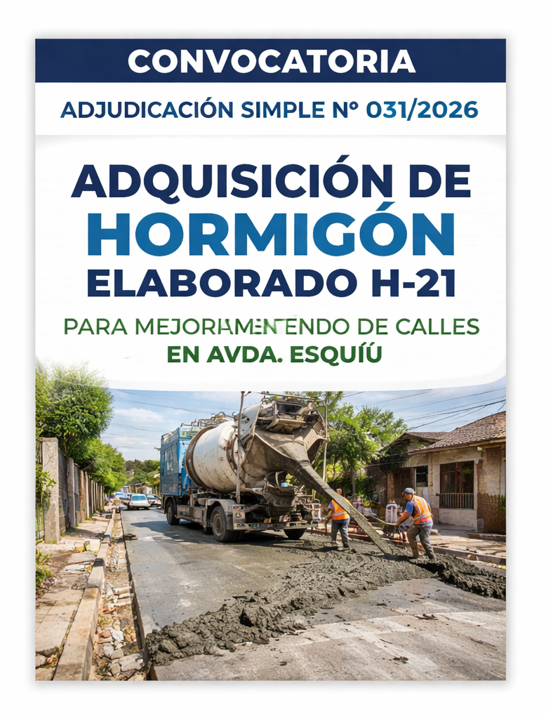 Objeto: Adquisición de hormigón elaborado H-21 para obra de mejoramiento de calles en Avda. Esquiú.