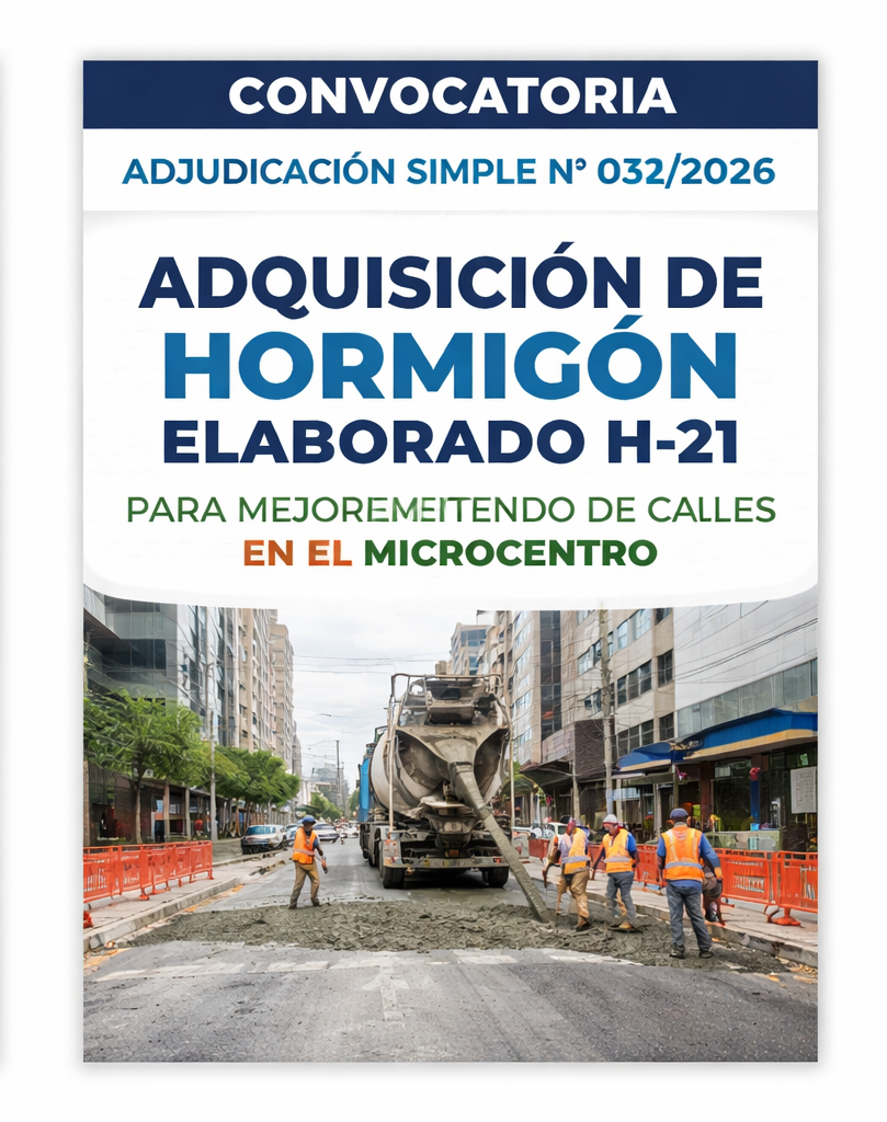 Objeto: Adquisición de hormigón elaborado H-21 para obras de mejoramiento de calles en el microcentro de la ciudad.