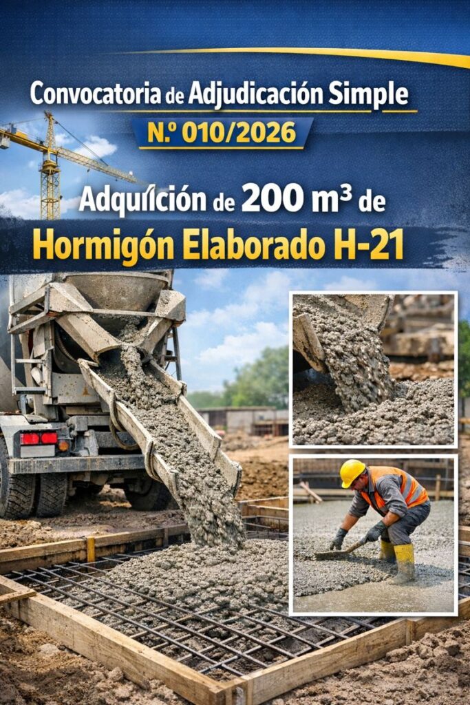 Objeto: Adquisición de 200 m³ (doscientos metros cúbicos) de Hormigón Elaborado H-21, destinados a la ejecución de trabajos de bacheo de hormigón sobre calle Esquiú, desde calle Arenales hasta calle Paraguay.