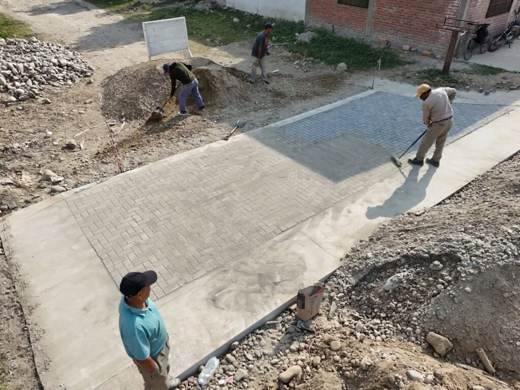 Además, se realizó el tomado de juntas entre adoquines, lo que permite consolidar la estructura existente y prevenir filtraciones o desplazamientos que afecten la calzada.